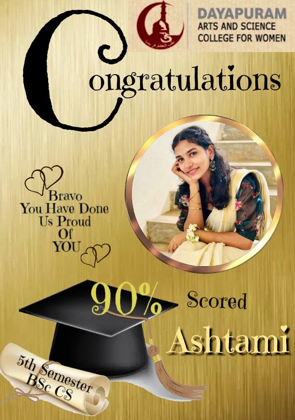 Dayapuram Arts and Science College for Women is a higher education centre for women empowerment and intellectual growth established in 2002. Affiliated to the University of Calicut, the college believes in furthering the foundational values of Dayapuram such as social equality, cultural justice and communal harmony through teaching, research and collective activities. Managed by academic volunteers from various parts of India, the college educates a number of orphan, destitute, socially and economically backward young girls in an attempt to work towards social development and hosts a number of intellectual pursuits